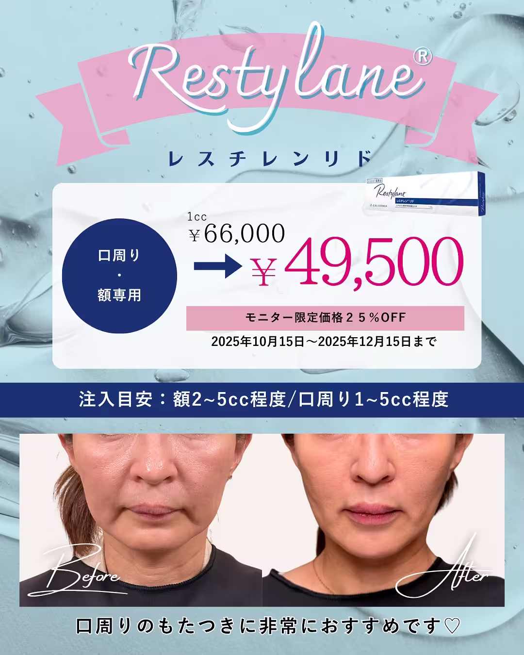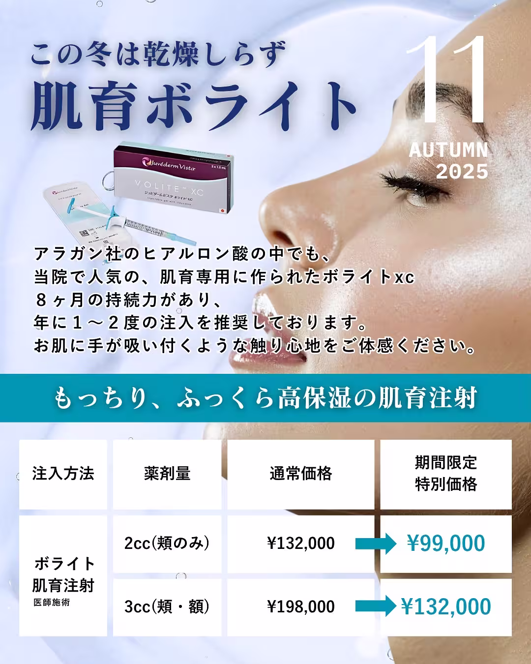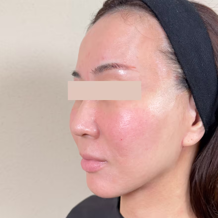 施術の副作用(リスク):だるさ・熱感・頭痛・蕁麻疹・痒み・むくみ・発熱・咳・冷や汗・胸痛、目がゴロゴロする、施術箇所の知覚の麻痺・鈍さ、しびれ、傷痕のもり上がり・凹み ・色素沈着、希望と異なると感じる、仕上がりに左右差があると感じるなどを生じることがあります。