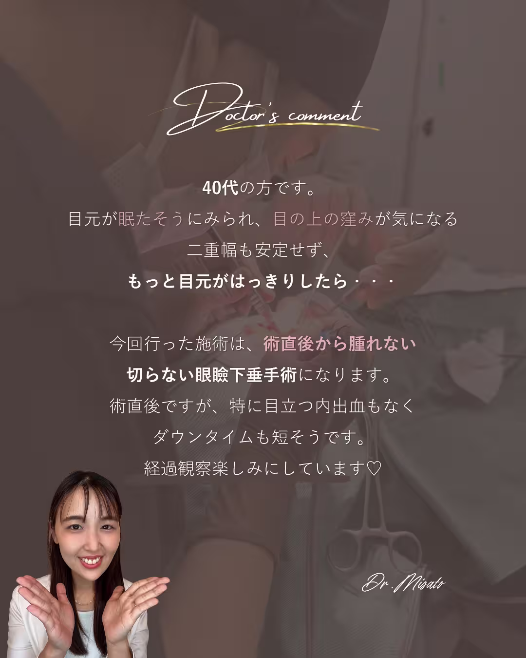 術直後から腫れない切らない眼瞼下垂手術になります。