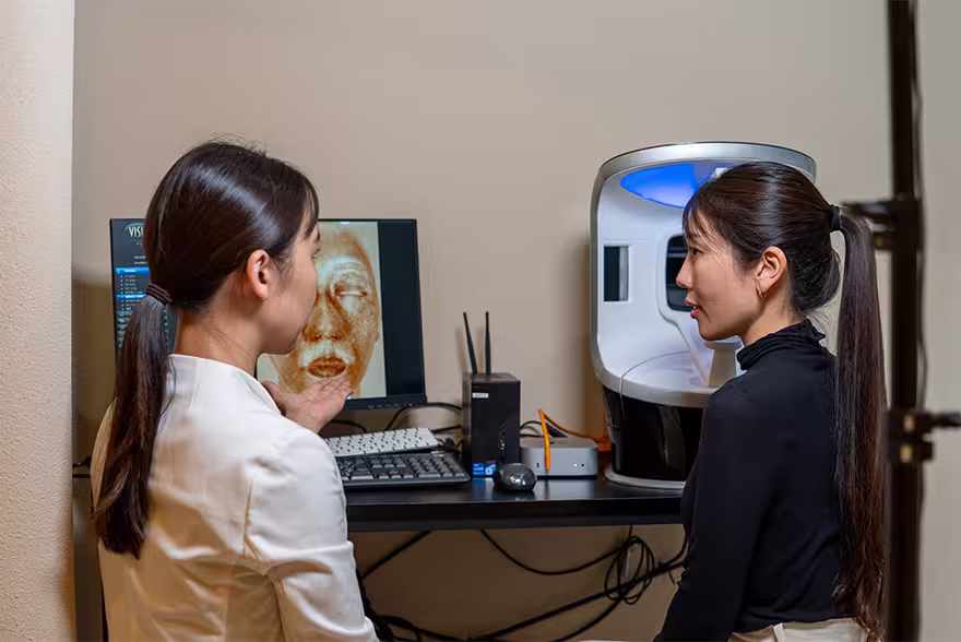 高性 能なカメラと画像解析技術搭載。肌診断機器のVISIAを使用。